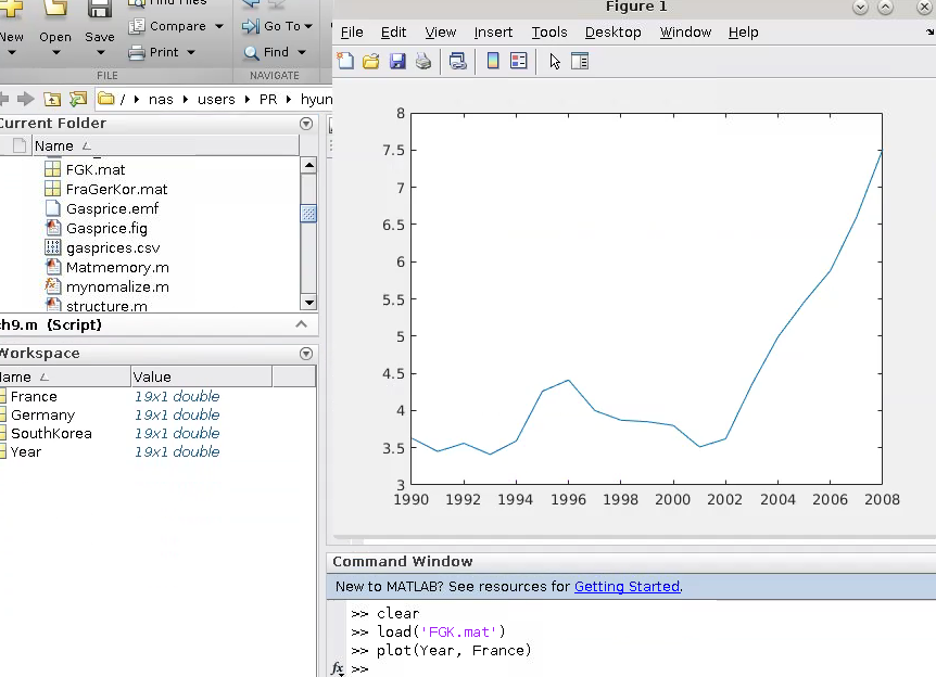 명령창에 plot(Year, France) 라고 입력하면!