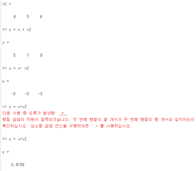 그림3. 벡터 원소간 곱셈과 나눗셈 .이 각각 연산해라 라는 뜻이 되는거겠죠?!