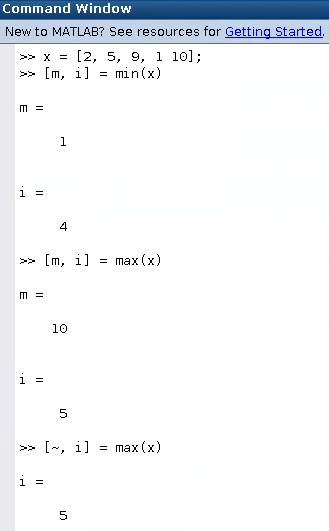 [~, i] = max(x) % i에 max(x) 값의 위치를 할당
