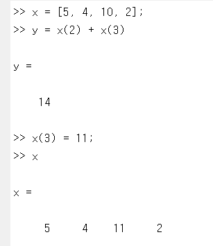 y = x(2) + x(3); -> x의 2, 3 인덱스에 해당하는 값을 추출해 더하는 의미