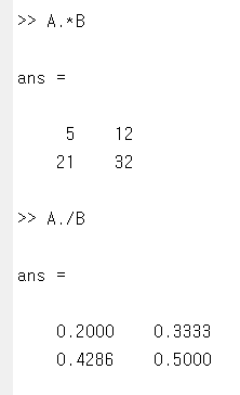 x = A ./B -> A, B 행렬 원소 간 나눗셈