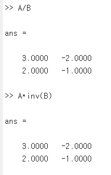 y = A/B -> 이는 A * B의 역행렬을 의미합니다. A/B = A * B^-1