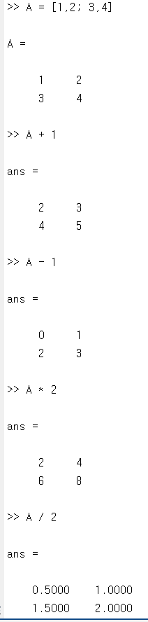 x = A+1 -> A 행렬의 모든 원소에 1을 더함