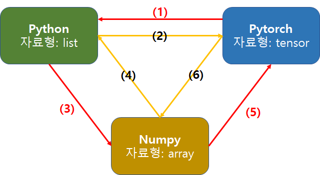 Python의 Pytorch framework와 Numpy library를 이용하다 보면 서로 사용하는 자료형 차이가 있어 많은 어려움이 있다.