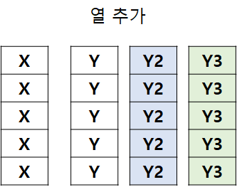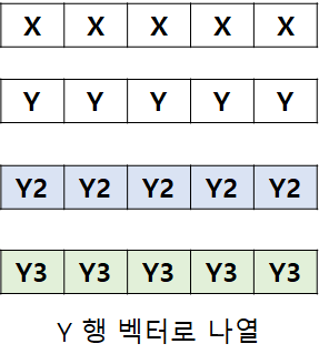 이번에는 y,y2,y3를 행 또는 열백터로 결합하는 방법입니다.