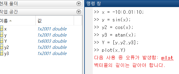 Y = [y, y2 ,y3]; -> y, y2, y3 열 벡터 결합