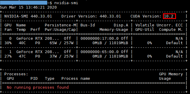 1. 첫번째 방법으로 쿠다 버전확인 (CUDA version check)