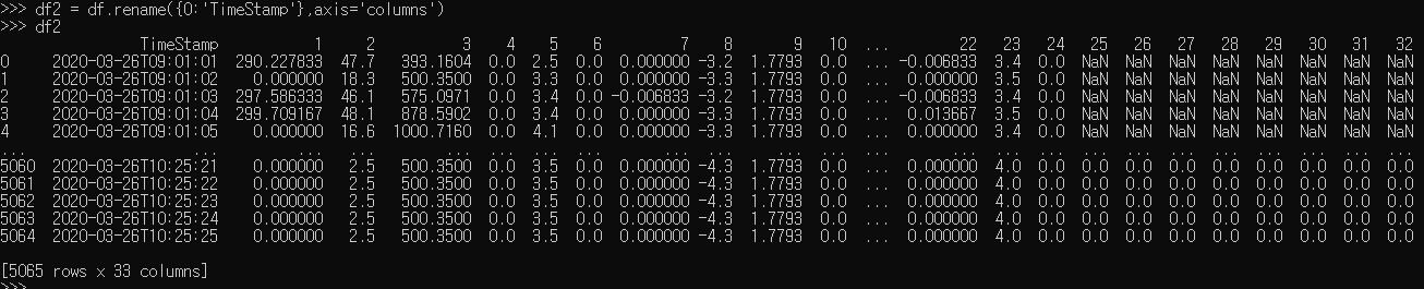 df2 = df.rename({0:'TimeStamp'}, axis = 'columns')