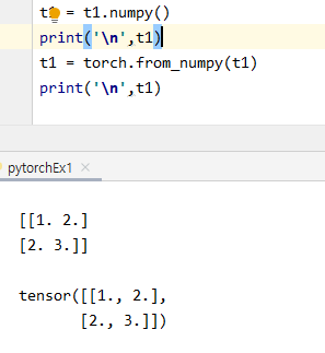위 이미지와 같이 torch.numpy, torch.from_numpy 메서드를 이용해
