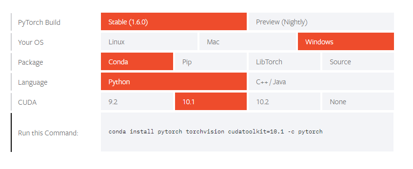 'Run this Command' 란에 pytorch install 명령어가 생성됩니다!