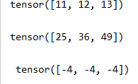 출력 결과 보시면 tensor 자료형으로 덧셈, 뺄셈, 제곱 연산이 가능합니다.