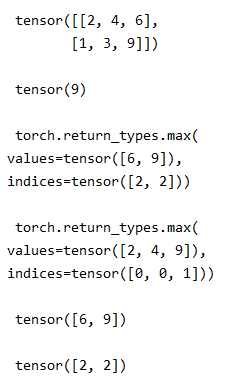 torch.return_types.max(values=tensor([6, 9]), indices=tensor([2, 2])