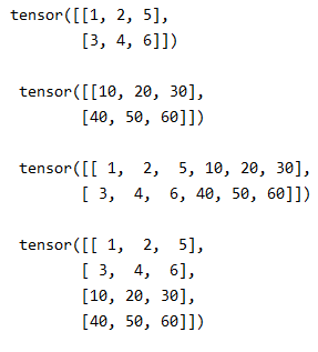 Tensor 자료형을 행방향과 열방향으로 각각 결합이 가능하도록 도와주는 함수입니다.